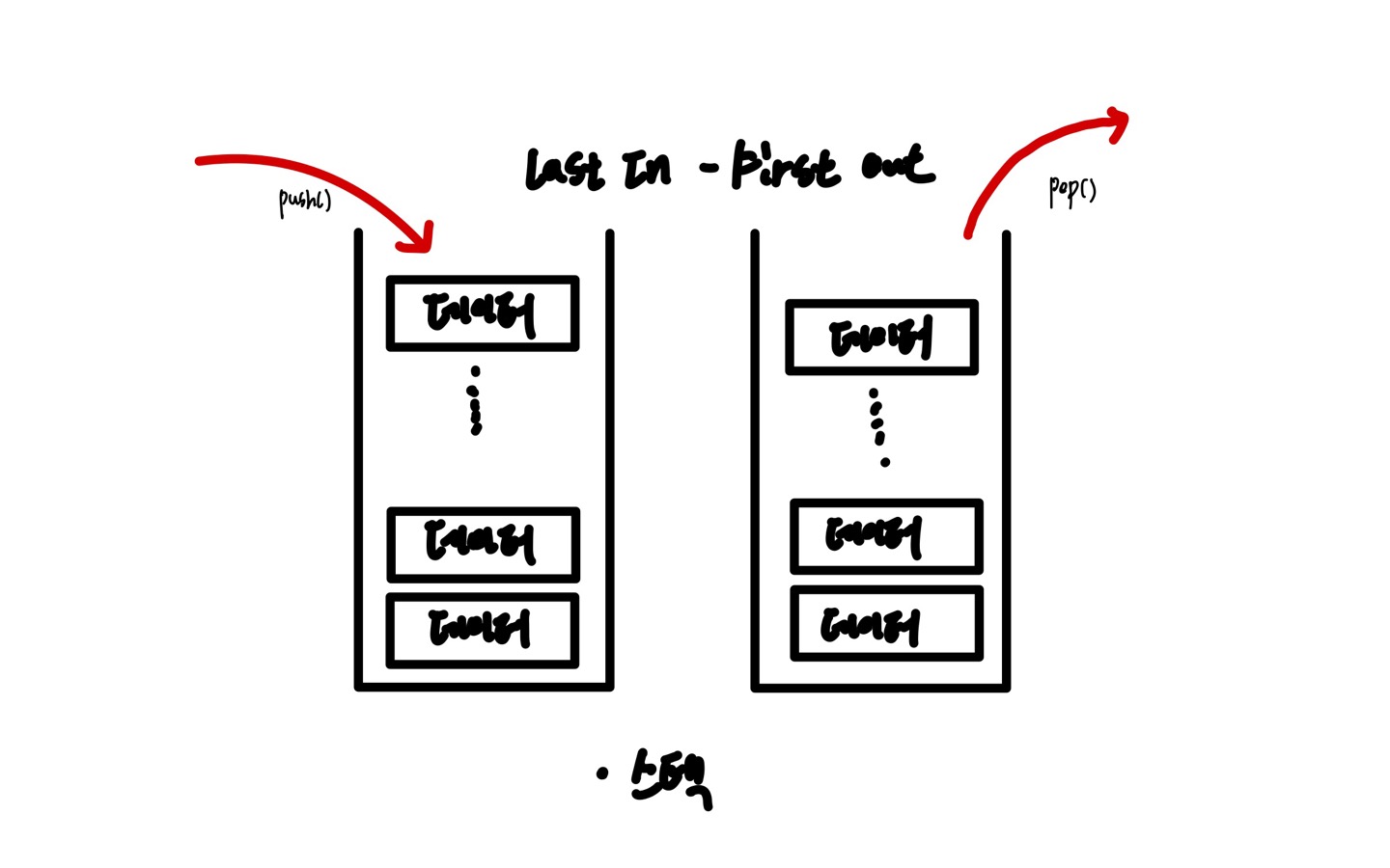스택(Stack)은 가장 마지막으로 들어간 데이터가 가장 첫 번째로 나오는 성질(LIFO, Last In Firest Out)을 가진 자료구조이다. 재귀적인 함수, 알고리즘에 사용되며 웹 브라우저 방문 기록등에서 사용된다. 시간 복잡도로는 삽입 및 삭제에서 O(1)과 탐색에서는 O(n)이 걸린다.